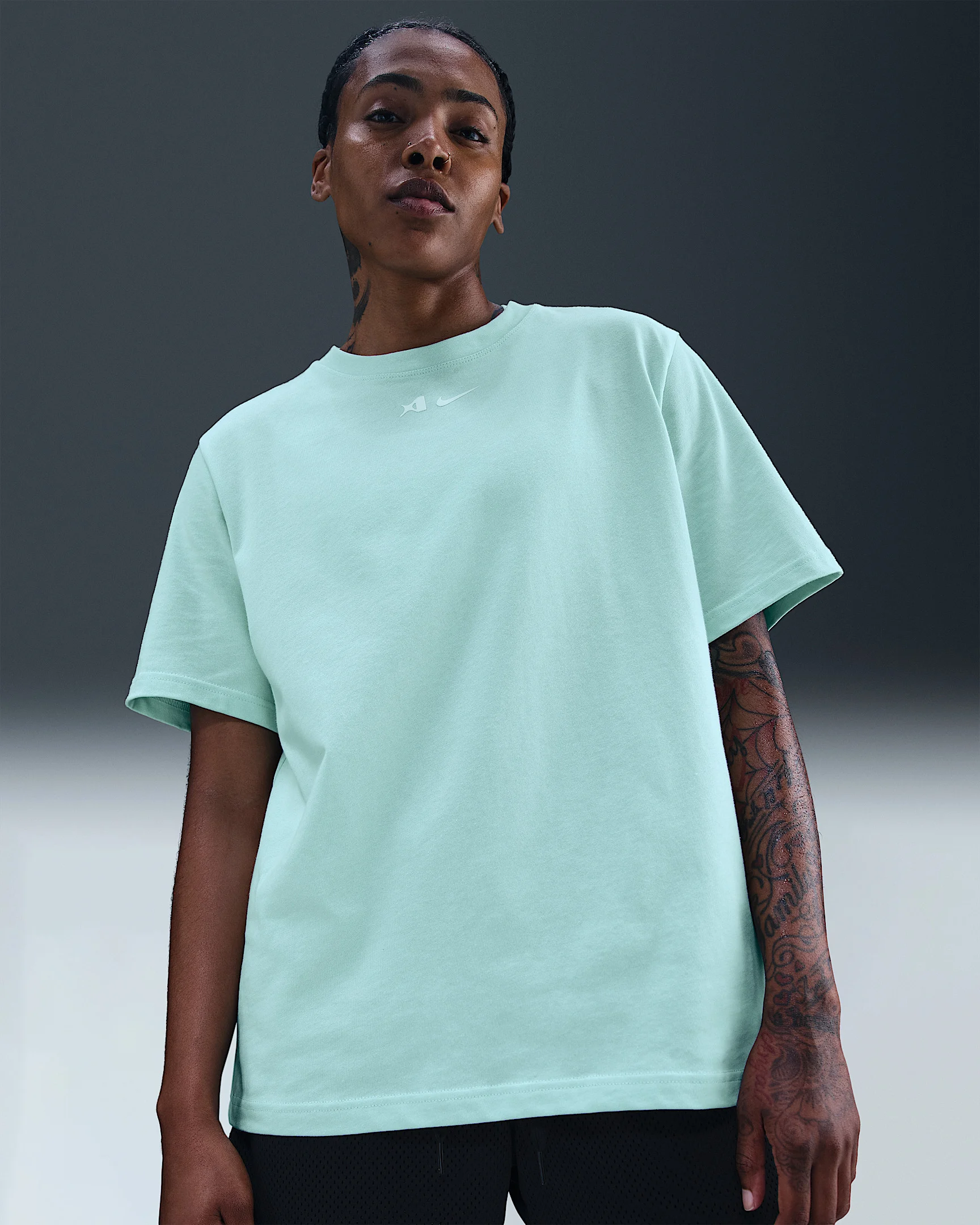 Unapologetic comfort meets unapologetic attitude. With structured, heavyweight cotton and a roomy fit, this tee honors the strength of A'ja's game. Benefits - A loose fit provides a comfortable, confident feel. - Built around the star she's always drawn into her signature, A'ja's logo is strong, bold and playful—just like the energy she brings to the court. Product Details - 100% cotton - Printed graphics - Machine wash - Imported - Shown: Jade Ice/White - Style: HQ1696-346 SIZE & FIT Loose fit: roomy and relaxed