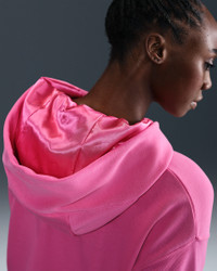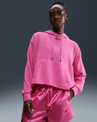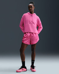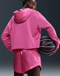 Unapologetic comfort meets unapologetic attitude. Take a page from A'ja Wilson's book and embrace your boldest self in this spacious, cropped hoodie. Its oversized, satin-lined hood helps keep your hair on point. Made from sweat-wicking French terry fabric, it's breathable enough to wear even when your game heats up. Product Details - Body: 80% cotton/20% polyester. Hood lining: 100% polyester. - Front pocket - Hood with drawcord - Machine wash - Imported - Shown: Pinksicle/Black - Style: HM7707-684 SIZE & FIT Model is wearing size S and is 5′9″175cm Oversized fit: exaggerated and spacious