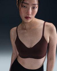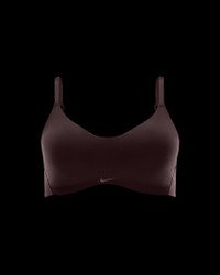 Unbelievably soft and impossibly lightweight, the Alate Minimalist delivers effortless comfort. Light support gives you a gentle hold while stretchy, sewn-in padding offers subtle shaping and coverage. A low-profile design and convertible, adjustable straps work for you and your outfit all day, every day. More Benefits - Nike Dri-FIT technology moves sweat away from your skin for quicker evaporation, helping you stay dry and comfortable. - Perforations at center front add breathability in high-heat area. Product Details - Body: 74% polyester/26% spandex. Panels lining: 74% polyester/26% spandex. Mesh: 59% polyester/41% spandex. Pad: 100% polyurethane. Pad back fabric: 100% polyester. - Hook-and-eye closure - Machine wash - Imported - Shown: Earth/White - Style: FQ3550-227 SIZE & FIT Tight fit: snug and form-fitting Light support: feels ke a soft hug with plenty of freedom
