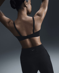 Unbelievably soft and impossibly lightweight, the Alate Minimalist delivers effortless comfort. Light support gives you a gentle hold while stretchy, sewn-in padding offers subtle shaping and coverage. A low-profile design and convertible, adjustable straps work for you and your outfit all day, every day. More Benefits - Nike Dri-FIT technology moves sweat away from your skin for quicker evaporation, helping you stay dry and comfortable. - Perforations at center front add breathability in high-heat area. Product Details - Body: 74% polyester/26% spandex. Panels lining: 74% polyester/26% spandex. Mesh: 59% polyester/41% spandex. Pad: 100% polyurethane. Pad back fabric: 100% polyester. - Hook-and-eye closure - Machine wash - Imported - Shown: Black/Cool Grey - Style: FQ3550-010 SIZE & FIT Tight fit: snug and form-fitting Light support: feels ke a soft hug with plenty of freedom