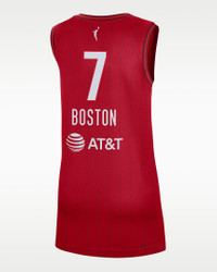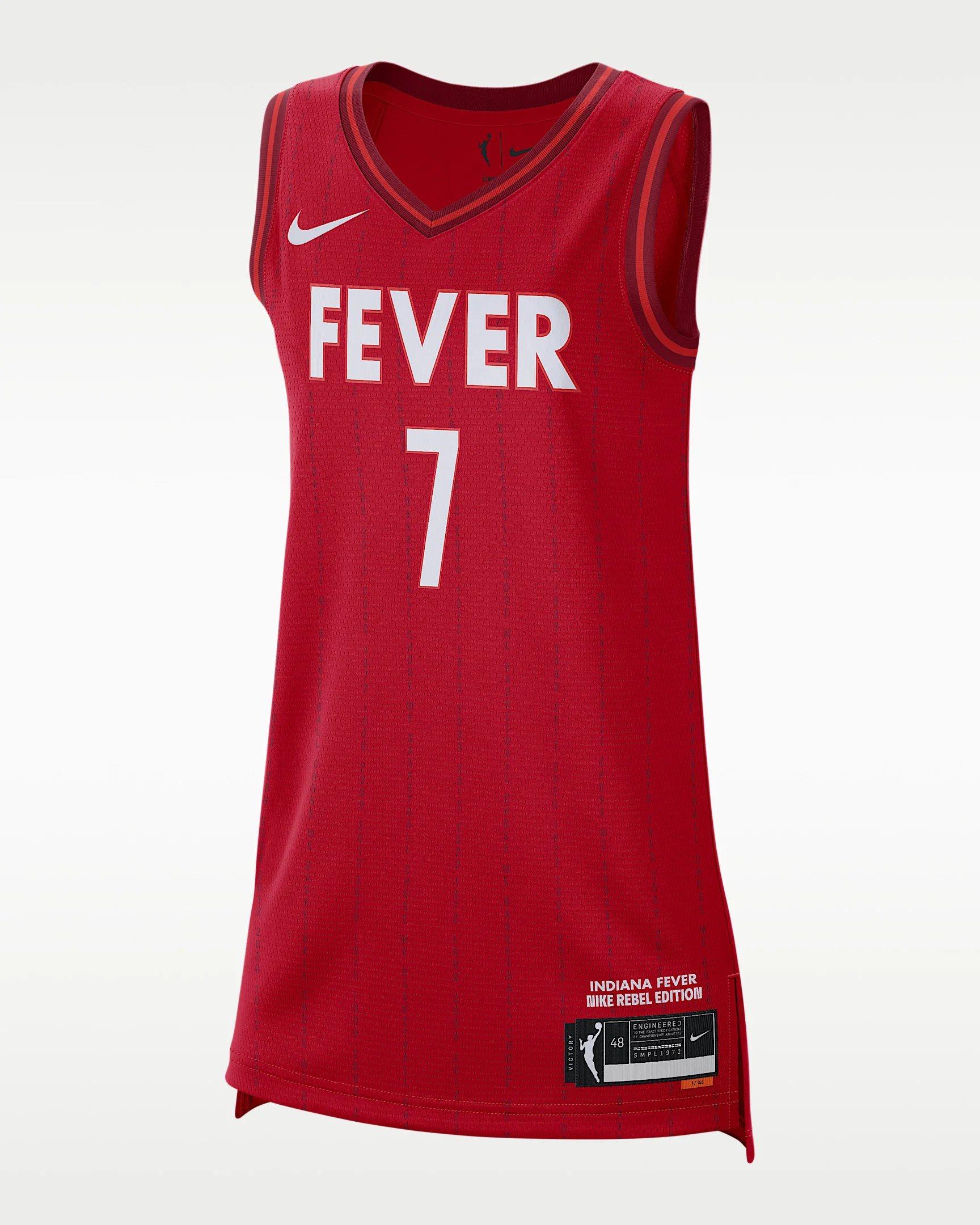 Got dreams to be the next Aliyah Boston? The first step is looking the part. This relaxed-fit replica jersey gives you details modeled after what the Fever wear on the court and lets you rep your favorite player everywhere you go. Benefits - Nike Dri-FIT technology moves sweat away from your skin for quicker evaporation, helping you stay dry and comfortable. - Lightweight knit fabric feels smooth against your skin. Product Details - 100% polyester - Machine wash - Imported - Shown: University Red - Style: DR8398-658 SIZE & FIT Loose fit: roomy and relaxed If you typically wear women's styles, please select your usual size. If you typically wear men's styles, please size up.