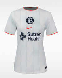 The Bay FC 2025 jersey honors the Bay Area with three main vertical stripes representing the different areas of the Bay. The nine lines within those stripes signify the nine counties that make them up. Tying those areas together are hazy, mist-inspired vertical stripes representing the iconic San Francisco fog. Product Details - Replica design - Three Bays hip detail - Woven crest - Embroidered Swoosh - 100% polyester - Machine wash - Imported - Shown: White/Night Silver - Style: P35557SFFC-WNS