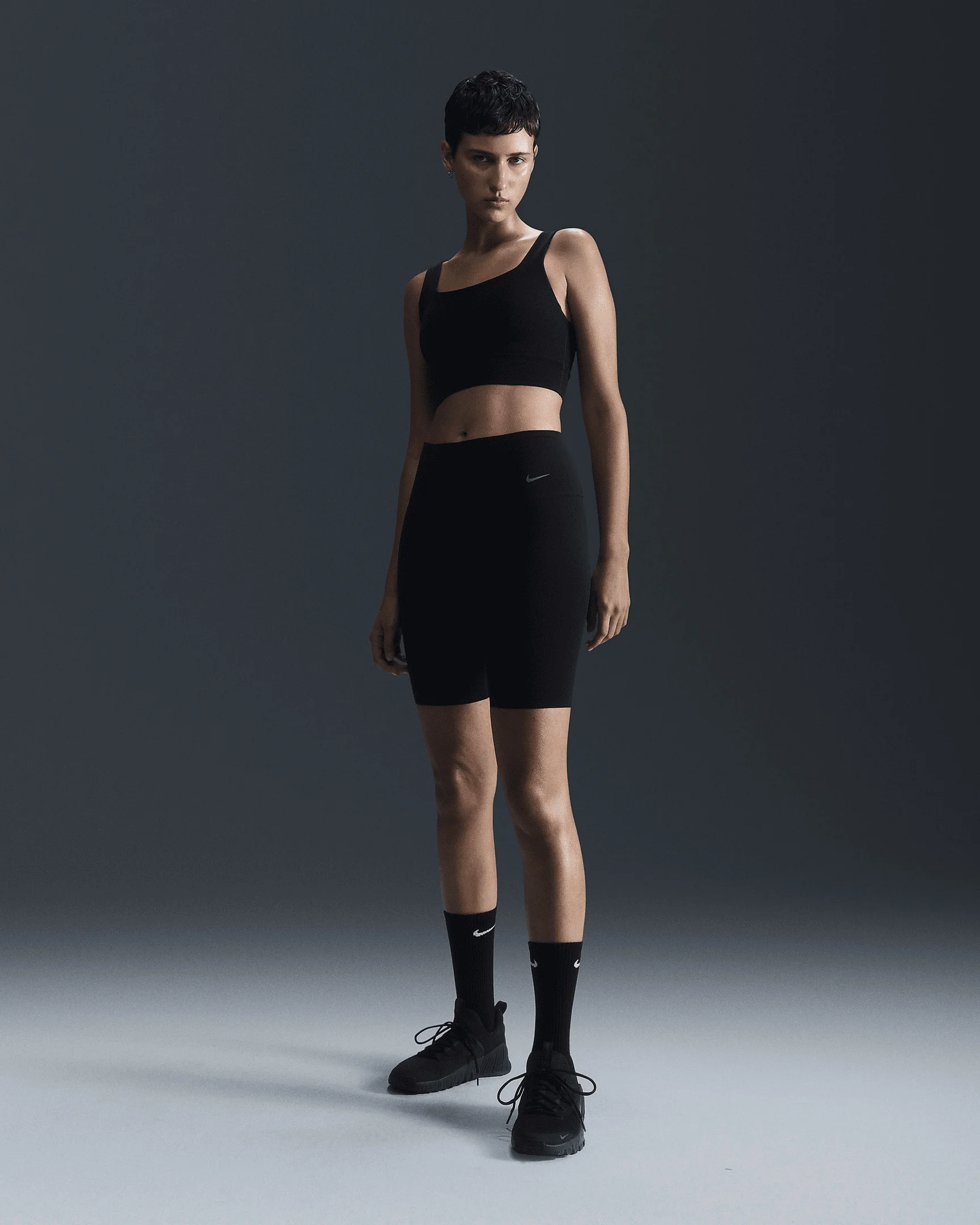 Whether it's yoga or a bike ride or a walk, you can move freely in our unbelievably soft Nike Zenvy shorts. Their InfinaSoft fabric is lightweight—but still squat-proof!—with softness that you can feel with every bend, stretch and shift. Fewer pockets give you a streamlined look, but the drop-in pocket at the center back is still big enough to hold your phone. Plus, they're durable enough for you to move, wash and wear again and again. Benefits - Designed to help reduce rolling, pinching and sliding, extra-wide waistband helps hold you up and smooths waist. - Nike Dri-FIT technology moves sweat away from your skin for quicker evaporation, helping you stay dry and comfortable. Product Details - 8" inseam - High-rise waistband - Body: 63% nylon/37% spandex. Gusset lining: 84% nylon/16% spandex. - Machine wash - Imported - Not intended for use as Personal Protective Equipment (PPE) - Shown: Black/Black - Style: DQ6003-010 SIZE & FIT Model is wearing size S and is 5′10″178cm Tight fit: snug and form-fitting Gentle support: feels ke a soft hug with plenty of freedom High-Waisted: sits at or above your natural waist for more coverage
