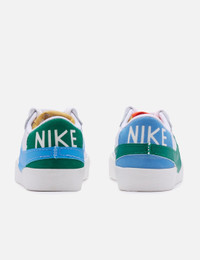 - Nike - Nike Blazer Low '77 Jumbo - Stitched leather upper with suede accents - Lace-up closure - Oversized Swoosh - Exposed foam tongue - Rubber outsole - Color: White/Malachite/University Blue - Style Code: DQ1470-100 - Material: Leather, Rubber - See more Sneakers and Shoes