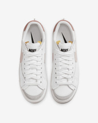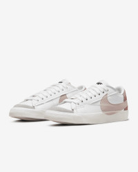 They say, "Don't fix what works." We say, "Perfect it." This streetwear superstar gets revamped with jumbo-sized details. Harnessing the old-school look you love, the Nike Blazer Low '77 Jumbo features an oversized Swoosh design, extra-wide laces and thicker stitching. Benefits - Jumbo laces are much easier to tie and add a bold look to any outfit. - Capturing the essence of the classic Blazer, the stitched leather overlays and soft suede accent on the toe add heritage hoops style. - Extra-thick thread for the stitching adds a bold, defiant touch. - Raised herringbone pattern on the rubber outsole exaggerates the classic look while providing traction. Product Details - Exposed foam tongue - Jumbo laces - Thick thread stitching - Oversized woven label - Shown: White/Rose Whisper/White/Pink Oxford - Style: DQ1470-102