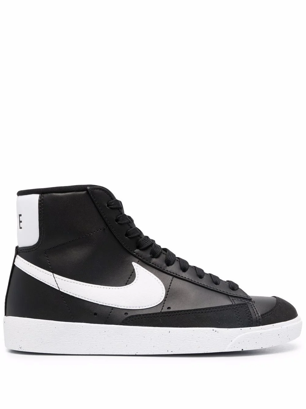 Blazer Mid 77 high-top sneakers A retro-inspired design, the Nike Blazer Mid ‘77 sneakers feature a leather construction accented with tonal suede panels. Branded details appear to the side, tongue and heel counter for an unmistakable look. Imported Composition Lining: Fabric 100% Sole: Rubber 100% Outer: PVC 100% SIZE & FIT Measurement HEEL 1.18 in(3 cm) HEIGHT 4.52 in(11.5 cm) Sole height 0.78 in(2 cm)