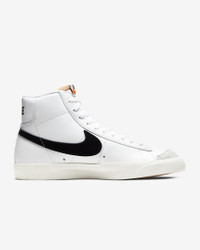 Styled for the ‘70s. Loved in the ‘80s. Classic in the ‘90s. Ready for the future. The Nike Blazer Mid ’77 delivers a timeless design that’s easy to wear. Its unbelievably crisp leather upper breaks in beautifully and pairs with bold retro branding and luscious suede accents for a premium feel. Exposed foam on the tongue and a special midsole finish make it look like you’ve just pulled them from the history books. Go ahead, perfect your outfit. Benefits - Leather and synthetic upper looks crisp and is easy to style. - Vintage treatment on the midsole adds the perfect touch of retro. - Autoclave construction fuses the outsole to the midsole for a streamlined look that’s timeless. - Exposed foam on the tongue provides a throwback look. - Non-marking, solid-rubber outsole with herringbone pattern for excellent traction and durability that leaves the imprint you love. Product Details - Shown: White/Sail/Peach/Black - Style: CZ1055-100 SIZE & FIT For easier entry, we recommend unlacing the top 4 eyelets and sghtly loosening the laces farther down