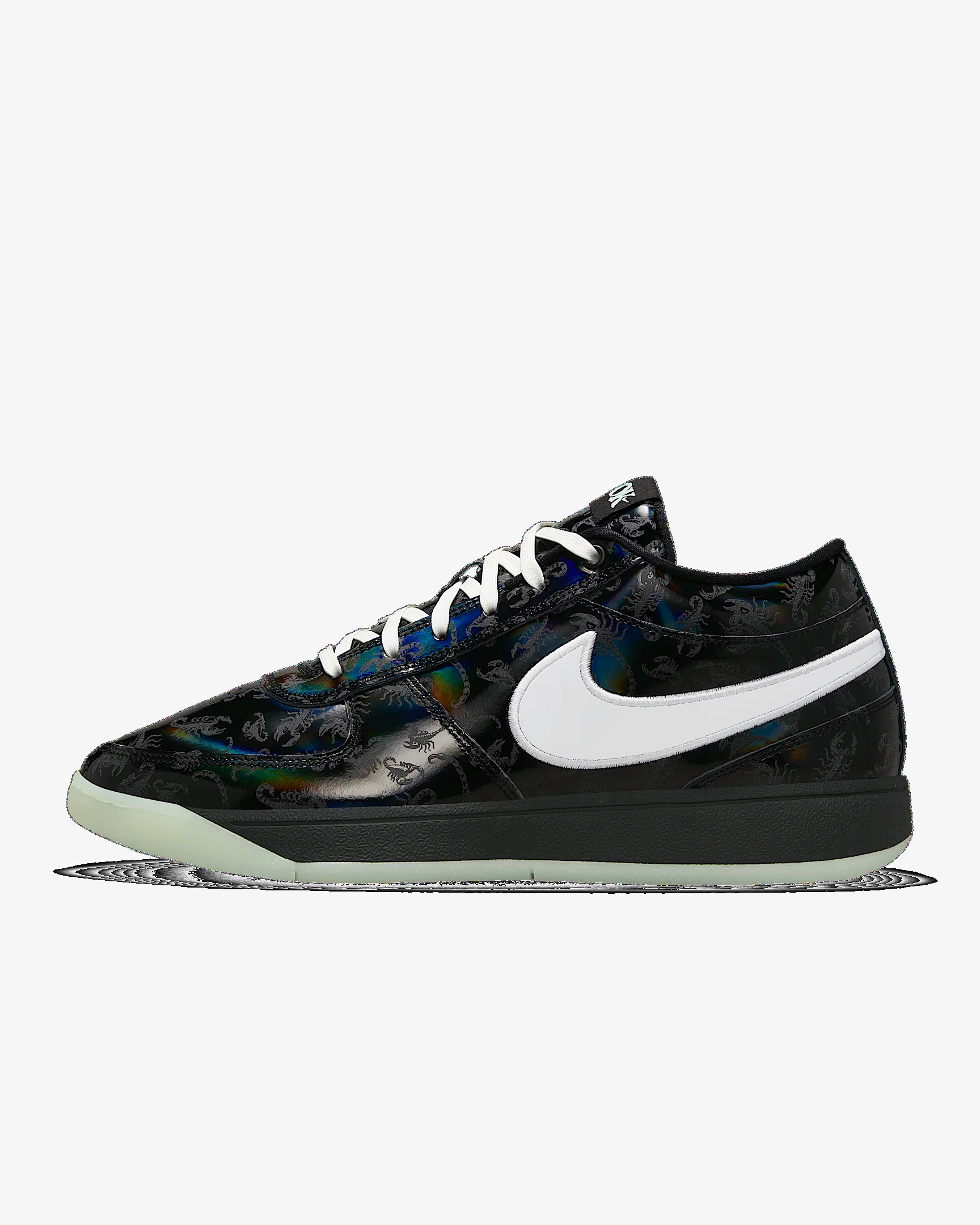 It's slim pickings trying to locate a Arizona Bark Scorpion during the day. But shine a UV light along the desert floor at night and these creepy critters actually glow—just like Book when he’s lighting up a defense with a 30-piece. This special Book 1 takes on the arachnid’s attributes and then some. The black-rainbow leather upper comes with a printed scorpion pattern that’s visible under UV lighting. And, a glow-in-the-dark outsole completes a look ready for slithers to the rim and scurries around the floor. Product Details - Shown: Black/Black/White - Style: IM7615-001
