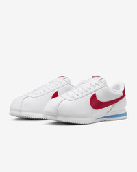 One word: tradition. From heritage running to fashion phenom, its retro appeal, sponge-soft midsole and seesaw detailing deliver decade after decade. This iteration combines smooth leather and easy-to-style colors for a vintage vibe. Benefits - Leather upper is easy to clean and easy to style. - Foam midsole with iconic wedge insert provides lightweight cushioning. - Herringbone outsole pattern pairs durable traction and heritage style. - Padded, low-cut collar looks sleek and feels great. Product Details - Shown: White/Varsity Blue/Varsity Red - Style: DN1791-108 SIZE & FIT Fits small; we recommend ordering a half size up