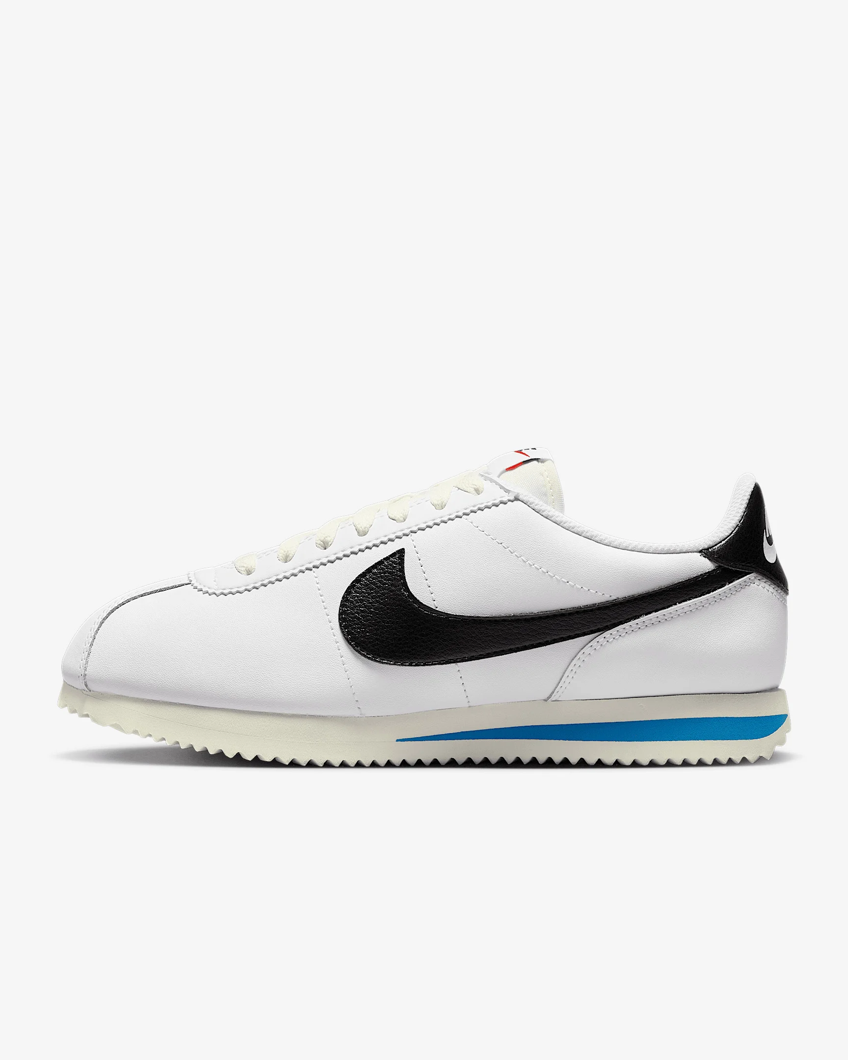 One word: tradition. From heritage running to fashion phenom, its retro appeal, sponge-soft midsole and seesaw detailing deliver decade after decade. This iteration combines smooth leather and easy-to-style colors for a vintage vibe. Benefits - Leather upper is easy to clean and easy to style. - Foam midsole with iconic wedge insert provides lightweight cushioning. - Herringbone outsole pattern pairs durable traction and heritage style. - Padded, low-cut collar looks sleek and feels great. Product Details - Shown: White/Light Photo Blue/Sail/Black - Style: DN1791-100 SIZE & FIT Fits small; we recommend ordering a half size up