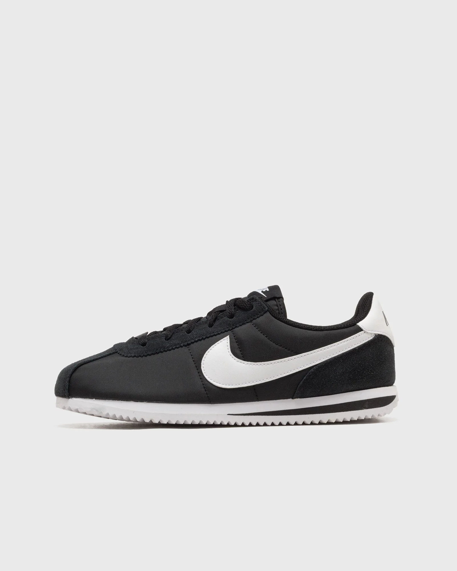 This new edition of the Nike Cortez in the retro style of 1972 has a wider toe area and reinforced side panels that ensure all-day comfort and prevent deformation. The herringbone outsole provides durable traction and traditional style. - The redesigned upper is extra durable to prevent deformation, creasing, and abrasion. - The wider toe box provides a more comfortable fit. - Firmer side panels prevent the foot from slipping and ensure a stable fit. - The durable foam midsole with iconic wedge insert ensures comfort - The herringbone pattern outsole provides durable traction and traditional style Article number: IH7654-002 Gender: women,kids Color: black/white Material: 100% Synthetic/Textile
