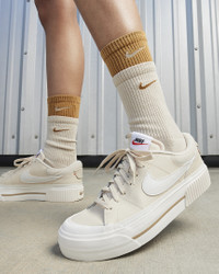 Elevate your style with the Nike Court Legacy Lift. Its platform midsole delivers a bold statement on top of the classic, easy-to-wear design. And don't worry, we've kept the fit you love. Benefits - Subtly layered upper keeps it classic and easy to wear. - Rubber outsole delivers traction and durability. - Padded heel and plush tongue feel soft. Product Details - Shown: Pearl White/Sail/Team Orange/Phantom - Style: DM7590-200