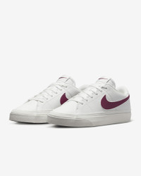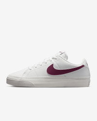 Honoring a history rooted in tennis culture, the Nike Court Legacy Next Nature brings you a time-tested staple in a design that's made from at least 20% recycled materials by weight. Its synthetic leather and retro design let you blend sport and fashion. Do good by looking good. Benefits - Whenever you see the Nike Sunburst or the name Next Nature (NN), you see one more step on our journey toward zero carbon and zero waste. - Synthetic leather gives you high-quality durability and comfort. - Full-length rubber outsole with herringbone pattern delivers multi-surface traction. Product Details - Canvas trim - Padded collar - Shown: Summit White/Sail/Pearl Pink/Rosewood - Style: DH3161-106 SIZE & FIT Fits small; we recommend ordering a half size up