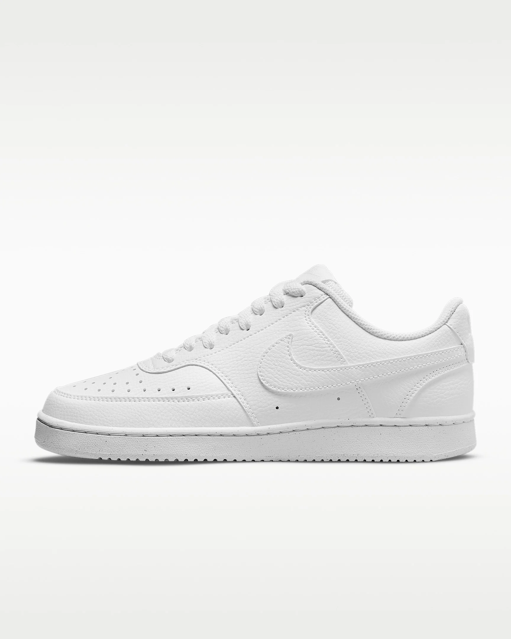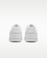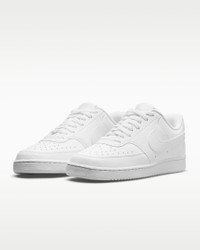 In love with the classic look of '80s basketball but have a thing for the fast-paced culture of today's game? Meet the Nike Court Vision Low Next Nature. Made from at least 20% recycled materials by weight, its crisp upper and stitched overlays are inspired by the days of hook-shots and tube socks. The padded collar and rubber outsole bring comfort and traction for your world. Benefits - Made with at least 20% recycled material by weight. - Whenever you see the Nike Sunburst or the name Next Nature (NN), you see one more step on our journey toward zero carbon and zero waste. - Using synthetic materials, the design features materials that echo mid-1980s basketball shoes. - Padded, low-cut collar looks sleek and feels great while the perforations on the toe and sides add comfort and breathability. - Vulcanized construction fuses the outsole to midsole for a streamlined look that's durable and comfortable. Product Details - Perforations on the toe and sides - Rubber outsole - Shown: White/White/White - Style: DH3158-100 SIZE & FIT Fits large; we recommend ordering a half size down
