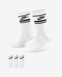 Put your best foot forward with the Nike Sportswear Socks. Made with soft, stretchy fabric and designed for daily wear, they're durable, breathable and extra comfortable. Benefits - Dri-FIT technology helps keep your feet dry and comfortable. - Reinforced heel and toe provide durability. - Strategically placed mesh adds breathability. Product Details - 97% polyester/3% polyurethane - Machine wash - Imported - Shown: White/Black/Black - Style: DX5089-103