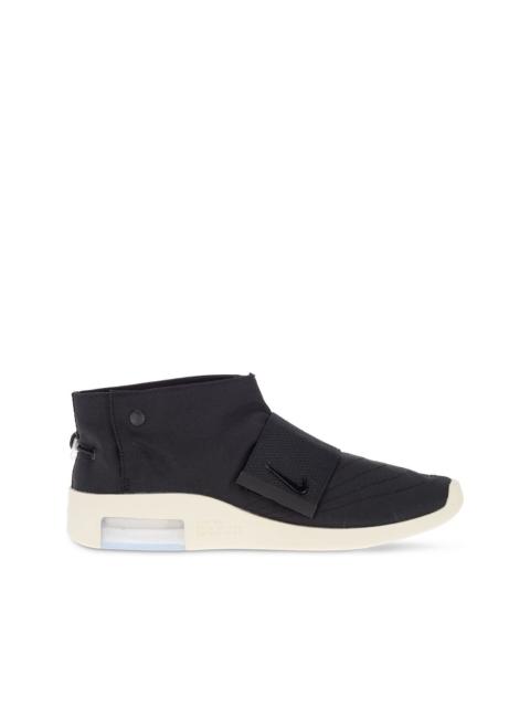 x Fear Of God Moccasin "Black" sneakers Black drawstring Hi-top sneakers from Nike featuring a round toe, an elasticated strap, a signature Nike swoosh, a press stud fastening and a flat rubber sole. Made in United States Composition Sole: Rubber 100% Outer: Nylon 100% Lining: Nylon 100%