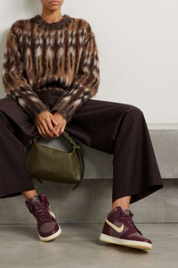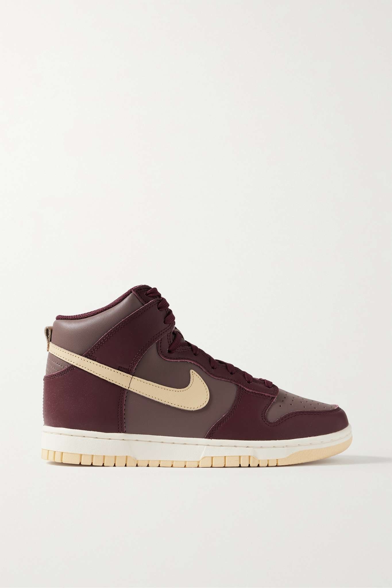 EDITORS'NOTES Nike's 'Dunk High' shoes were hugely sought-after by sneakerheads in the '80s and '00s. Updated in a tonal-burgundy and cream colorway, they're made from smooth leather and perforated across the toes for breathability. The foam midsoles, mesh lining and padded collars ensure they feel really comfy. SIZE & FIT Nike follows its own size guide, please refer to below: - US 5 = UK 2.5/ EU 35.5 - US 5.5 = UK 3/ EU 36 - US 6 = UK 3.5/ EU 36.5 - US 6.5 = UK 4/ EU 37.5 - US 7 = UK 4.5/ EU 38 - US 7.5 = UK 5/ EU 38.5 - US 8 = UK 5.5/ EU 39 - US 8.5 = UK 6/ EU 40 - US 9 = UK 6.5/ EU 40.5 - US 9.5 = UK 7/ EU 41 - US 10 = UK 7.5/ EU 42 - US 10.5 = UK 8/ EU 42.5 - US 11 = UK 8.5/ EU 43 - US 11.5 = UK 9/ EU 44 - US 12 = UK 9.5/ EU 44.5 - Fits true to size, take your normal size - Packaging reflects both men’s and women’s sizing DETAILS & CARE - Rubber sole measures approximately 30mm/ 1 inch - Tonal-burgundy and cream leather (Cow) - Lace-up front - Nike follows its own size guide, therefore the size stated on the box will differ from the one provided in our size chart. To receive your correct fit, please refer to Size & Fit notes