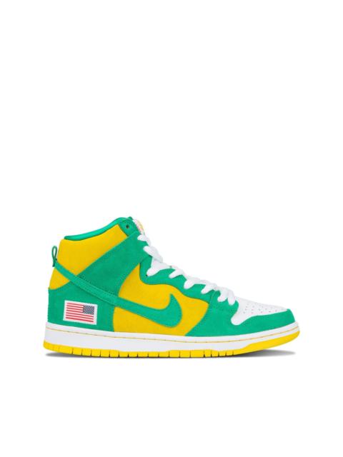 Dunk High Pro SB sneakers Originally released in 2002, the Dunk High Pro sneakers are here presented in a blue and black colourway. Constructed from leather, this pair features a logo patch at the padded tongue and the signature wrap-around swoosh in a black hue. Imported Composition Sole: Rubber 100% Outer: Leather 100% Lining: Fabric 100%