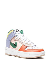 Dunk High Rebel Cashmere sneakers Nike has updated the iconic Dunk High once more. The "Rebel" version comes with a Cashmere, Green Noise, and Pale Coral colour combination. It features layered panels, double Swoosh logos o note panels, and a thicker midsole. Imported Composition Leather 100%
