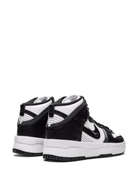 Dunk High Up "Panda" sneakers The Nike Dunk High, known as the Nike Dunk High Rebel, now arrives in a black and white hue. The pair is crafted from white leather on the base while a black tone lands on the laces, overlays, and branding. To complete the look, they're enhanced with dual Swoosh logos on the lateral, and a thick stacked midsole. Imported Composition Leather 100%