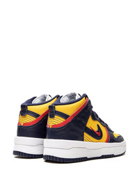 Dunk High Up "Michigan" sneakers Designed for a playful aesthetic, the Nike Dunk High boasts a panelled design and double Swoosh logo to the side. Here, a Varsity Maze and Midnight navy colourway adds to the pair's bold look. Imported Composition Leather 100%