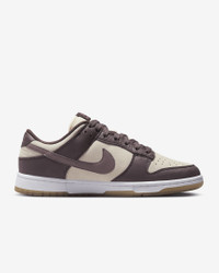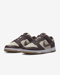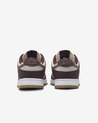 Created for the hardwood but taken to the streets, the Dunk Low delivers classic details and throwback hoops flair. Premium suede underlays contrast with rich overlays, elevating the aesthetic with a crafted touch. A gum-colored outsole adds a sophisticated edge and the padded, low-cut collar punctuates your look. Comfort, with an exclamation mark. Benefits - Upper ages to soft perfection and features durable construction reminiscent of '80s b-ball. - Padded, low-cut collar looks sleek and feels great. - Foam midsole offers lightweight, responsive cushioning. - Rubber outsole with classic hoops pivot circle adds durability, traction and heritage style. - Shown: Coconut Milk/Earth/Gum Light Brown/Plum Eclipse - Style: FJ4734-100