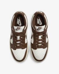 Created for the hardwood but taken to the streets, the '80s b-ball icon returns with perfectly shined overlays and classic team colors. With its iconic hoops design, the Nike Dunk Low channels '80s vintage back onto the streets while its padded, low-cut collar lets you take your game anywhere—in comfort. Benefits - The crisp leather on the upper has a slight sheen, ages to soft perfection and features durable overlays reminiscent of '80s b-ball. - The foam midsole offers lightweight, responsive cushioning. - The padded, low-cut collar adds a sleek look that feels comfortable. - The bold color-blocking on select versions returns to the university colors released in 1985, letting you choose who reigned supreme and rep your team. - The rubber sole with classic hoops pivot circle adds durability, tractions and heritage style. Product Details - Low-cut collar - Foam insole - Shown: Sail/Coconut Milk/Cacao Wow - Style: DD1503-124