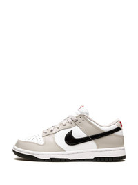 Dunk Low ESS "Light Iron Ore" sneakers Nike's Dunk Low Ess "Light Iron Ore" is inspired by the '80s b-ball icon. Channelling vintage style, this pair is crafted from leather with a patent finish - in light grey, white, black and red hues - and sits atop a two-tone rubber sole. Imported Composition Leather 100%