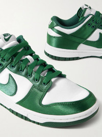 Nike's 'Dunk Low' sneakers play into the brand's retro basketball-inspired styles. They're made from lustrous green and white satin and designed with bouncy rubber soles and a signature 'Swoosh' at the sides. Size & Fit Nike follows its own size guide, please refer to below: - US 5 = UK 2.5/ EU 35.5 - US 5.5 = UK 3/ EU 36 - US 6 = UK 3.5/ EU 36.5 - US 6.5 = UK 4/ EU 37.5 - US 7 = UK 4.5/ EU 38 - US 7.5 = UK 5/ EU 38.5 - US 8 = UK 5.5/ EU 39 - US 8.5 = UK 6/ EU 40 - US 9 = UK 6.5/ EU 40.5 - US 9.5 = UK 7/ EU 41 - US 10 = UK 7.5/ EU 42 - US 10.5 = UK 8/ EU 42.5 - US 11 = UK 8.5/ EU 43 - US 11.5 = UK 9/ EU 44 - US 12 = UK 9.5/ EU 44.5 - Fits true to size, take your normal size Details & Care - Rubber sole measures approximately 30mm/ 1 inch - Green and white satin - Lace-up front - Designer color: White/ Team Green - Nike follows its own size conversion, therefore the size stated on the box will differ from the one provided in our conversion chart. To receive your correct fit, please refer to Size and Fit notes