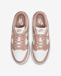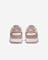 Created for the hardwood but taken to the streets, the '80s b-ball icon returns with perfectly shined overlays and classic team colors. With its iconic hoops design, the Nike Dunk Low channels '80s vintage back onto the streets while its padded, low-cut collar lets you take your game anywhere—in comfort. Benefits - The crisp leather on the upper has a slight sheen, ages to soft perfection and features durable overlays reminiscent of '80s b-ball. - The foam midsole offers lightweight, responsive cushioning. - The padded, low-cut collar adds a sleek look that feels comfortable. - The bold color-blocking on select versions returns to the university colors released in 1985, letting you choose who reigned supreme and rep your team. - The rubber sole with classic hoops pivot circle adds durability, tractions and heritage style. Product Details - Low-cut collar - Foam insole - Shown: White/Rose Whisper - Style: DD1503-118