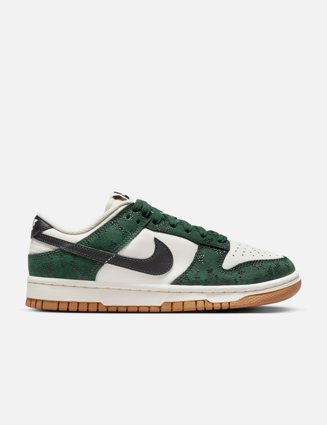 - Nike - Nike Dunk Low 'Snakeskin' - Leather upper with snakeskin pattern suede overlays - Lace-up closure - Foam midsole - Rubber outsole - Color: Pro Green/Black/Sail/Gum Med Brown - Style Code: FQ8893-397 - Material: Leather, Suede, Rubber - See more Sneakers and Shoes