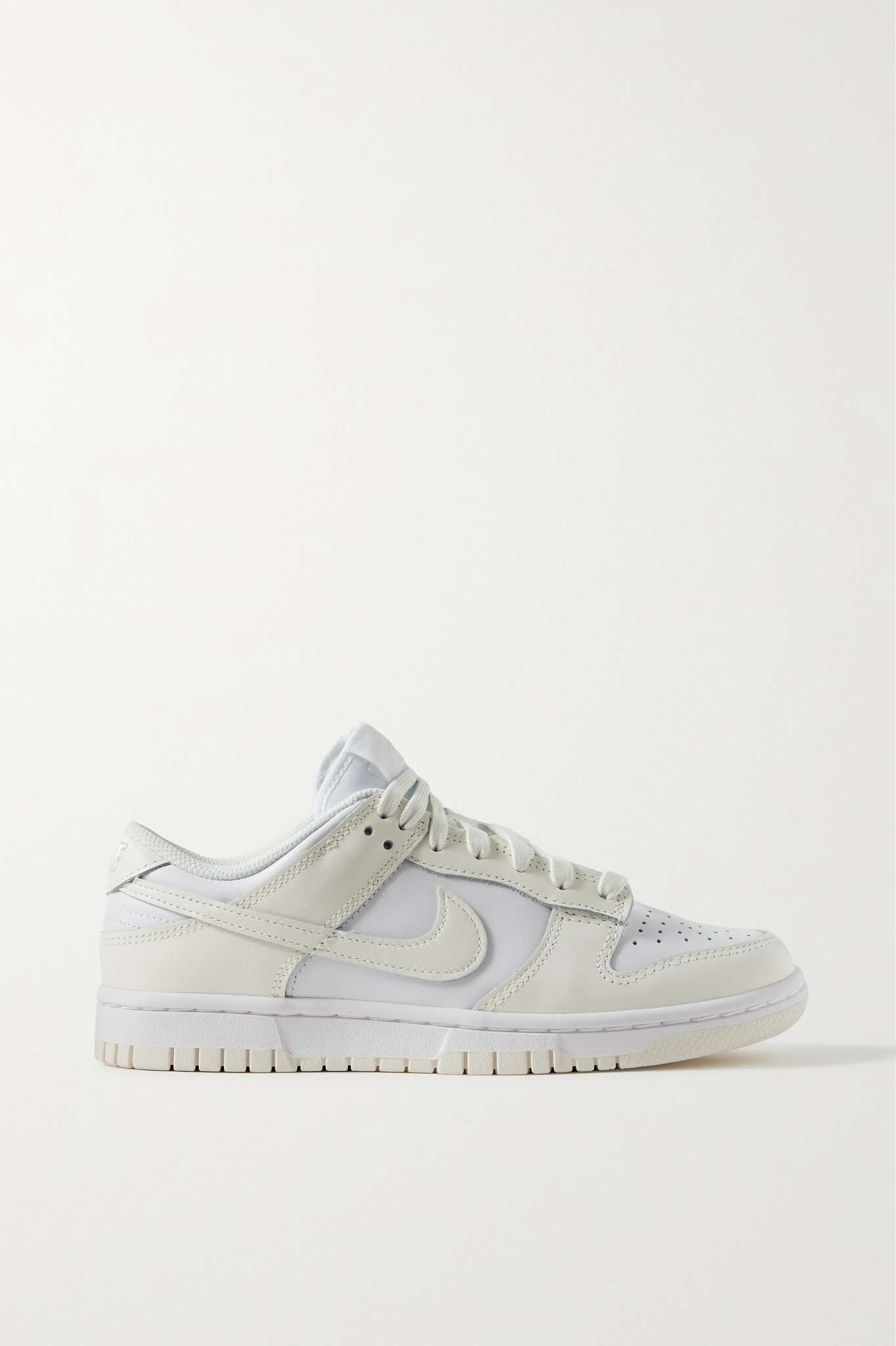 EDITORS'NOTES Since its 1985 debut, Nike's basketball-inspired 'Dunk' sneakers have seen countless updates, each one just as cool as the last. This low-top pair is crafted from perforated leather in a neutral cream and white colorway. Wear yours with everything from relaxed denim to figure-hugging dresses. SIZE & FIT - DETAILS & CARE - Rubber sole measures approximately 25mm/ 1 inch - Cream and white leather - Lace-up front - Designer color: White/ Sail - Nike follows its own size guide, therefore the size stated on the box will differ from the one provided in our size chart. To receive your correct fit, please refer to Size & Fit notes