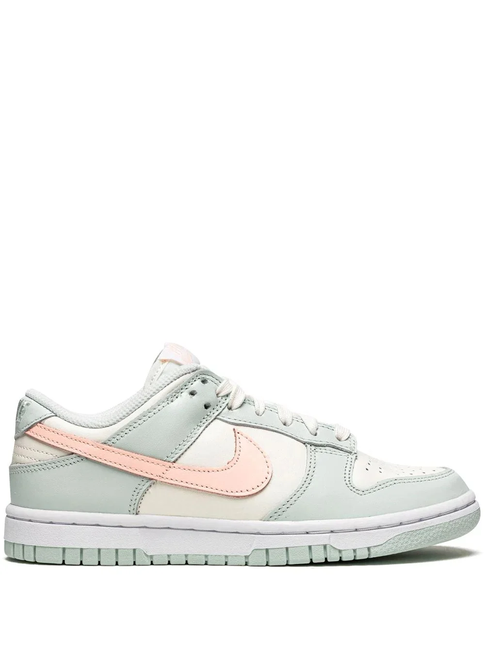 Dunk Low "Barely Green" sneakers A May 2021 release, the Nike Dunk Low "Barely Green" offers an understated take on the basketball and lifestyle sneaker. In soft green and white tones, the upper is punctuated by peach detailing, including the iconic Swoosh at the side. Imported Composition Leather 100% SIZE & FIT Measurement HEEL 1.18 in(3 cm) Sole height 0.78 in(2 cm) FittingInformation This piece fits small – take one size up