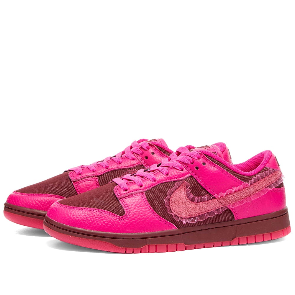 Nike reveals a playful iteration of its Dunk Low - just in time for Valentine's Day. A shoe to fall for, it features Cupid-red mesh uppers, overlaid with premium leather in a deep pink hue. Like always, the side wall is decorated with a signature Swoosh, only this time, it’s updated with tonal frills that peep out for a flirty finishing touch. - Canvas Uppers - Leather Overlays - Rubber Outsole - Style Code: DQ9324-600