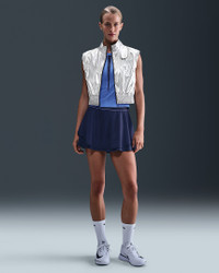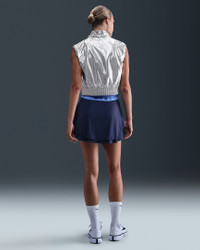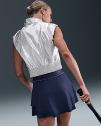 Turn heads in this eye-catching vest. Its shiny silver fabric pulls inspiration from glittering lights to celebrate the electric energy of nighttime matches in New York City. Product Details - Body/Lining: 100% polyester - Mesh lining - Interior snap pocket - Elastic at hem - Machine wash - Imported - Shown: Metallic Silver/Black - Style: IH1702-095 SIZE & FIT Standard fit: easy and traditional