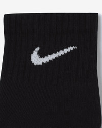 Power through your workout with the Nike Everyday Cushioned Socks. The thick terry sole gives you extra comfort for footdrills and lifts, while a ribbed arch band wraps your midfoot for a supportive feel. Benefits - Dri-FIT technology helps keep your feet dry and comfortable. - Thick terry sole offers comfort and impact absorption. - Ribbed arch band provides a supportive feel. - 1/4-length silhouette covers your ankle. Product Details - Fabric: 71% cotton/26% polyester/2% spandex/1% nylon - Machine wash - Imported - Shown: Black/White - Style: SX7667-010