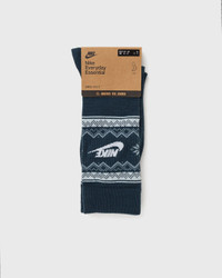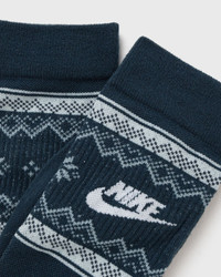 The Nike Fair Isle socks are made from soft, stretchy material that adapts to your feet and keeps you comfortable through the long winter days and nights. - The ribbing around the ankle prevents slipping - The breathable material keeps you dry and comfortable Article Number: FZ3071-478 Gender: Men, Women Color: ARMORY NAVY/GLACIER BLUE/WHITE Material: 95% Polyester, 5% Spandex/elastane