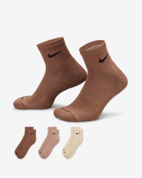 The Nike Everyday Plus Cushioned Socks bring comfort to your workout with extra cushioning under the heel and forefoot and a snug, supportive arch band. Sweat-wicking power and breathability up top help keep your feet dry and cool to help push you through that extra set. Benefits - Cushioning under the forefoot and heel helps soften the impact of your workout. - Dri-FIT technology helps your feet stay dry and comfortable. - Band around the arch feels snug and supportive. - Breathable knit pattern on top adds ventilation. - Reinforced heel and toe are made to last. Product Details - 63-70% cotton/28-35% polyester/2% polyurethane - Note: Material percentages may vary. Check label for actual content. - Machine wash - Imported - Shown: Multi-Color - Style: SX6890-968