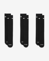 The Nike Everyday Plus Cushioned Socks bring comfort to your workout with extra cushioning under the heel and forefoot and a snug, supportive arch band. Sweat-wicking power and breathability up top help keep your feet dry and cool to help push you through that extra set. Benefits - Cushioning under the forefoot and heel helps soften the impact of your workout. - Dri-FIT technology helps your feet stay dry and comfortable. - Band around the arch feels snug and supportive. - Breathable knit pattern on top adds ventilation. - Reinforced heel and toe are made to last. Product Details - Fabric: 62-69% cotton/29-36% polyester/2% polyurethane - Note: Material percentages may vary depending on color. Check label for actual content. - Machine wash - Imported - Shown: Black/White - Style: SX6888-010
