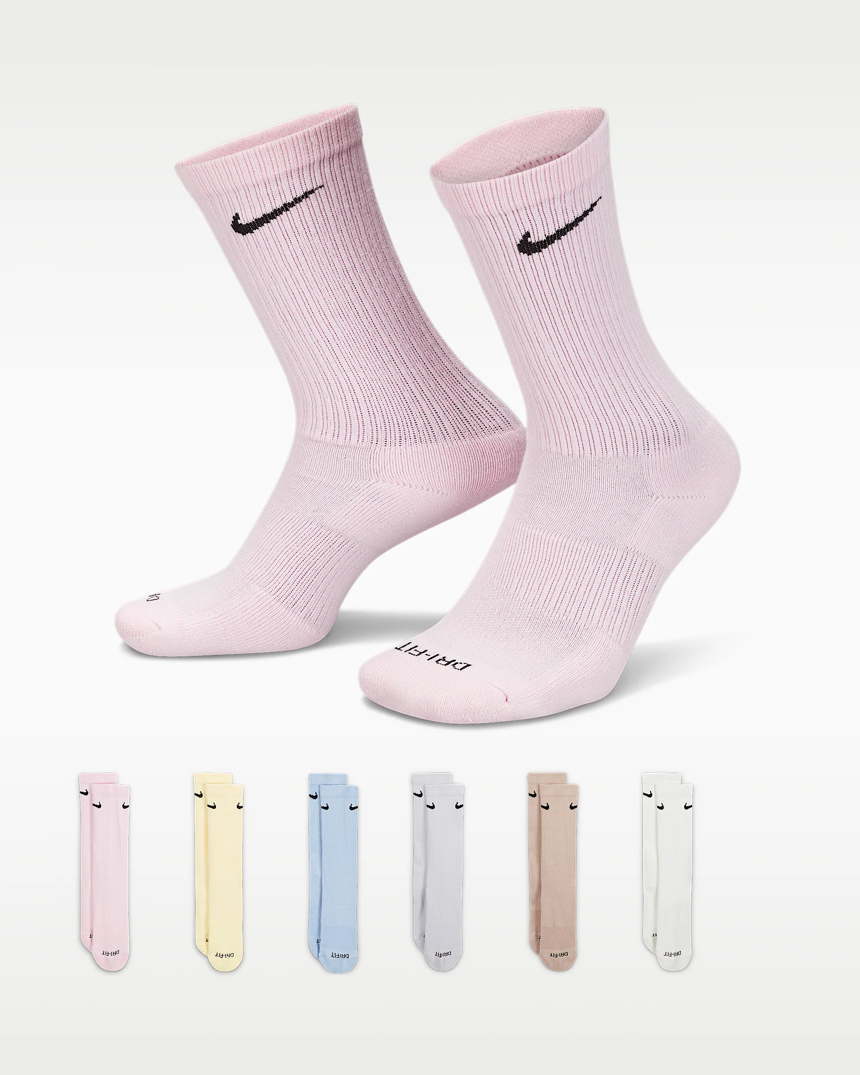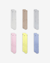 The Nike Everyday Plus Cushioned Socks bring comfort to your workout with extra cushioning under the heel and forefoot and a snug, supportive arch band. Sweat-wicking power and breathability up top help keep your feet dry and cool to help push you through that extra set. Benefits - Cushioning under the forefoot and heel helps soften the impact of your workout. - Dri-FIT technology helps your feet stay dry and comfortable. - Band around the arch feels snug and supportive. - Breathable knit pattern on top adds ventilation. - Reinforced heel and toe are made to last. Product Details - Fabric: 61-67% cotton/30-36% polyester/2% spandex/1% nylon - Machine wash - Imported - Note: Material percentages may vary slightly depending on color. Check label for actual content. - Shown: Multi-Color - Style: SX6897-906