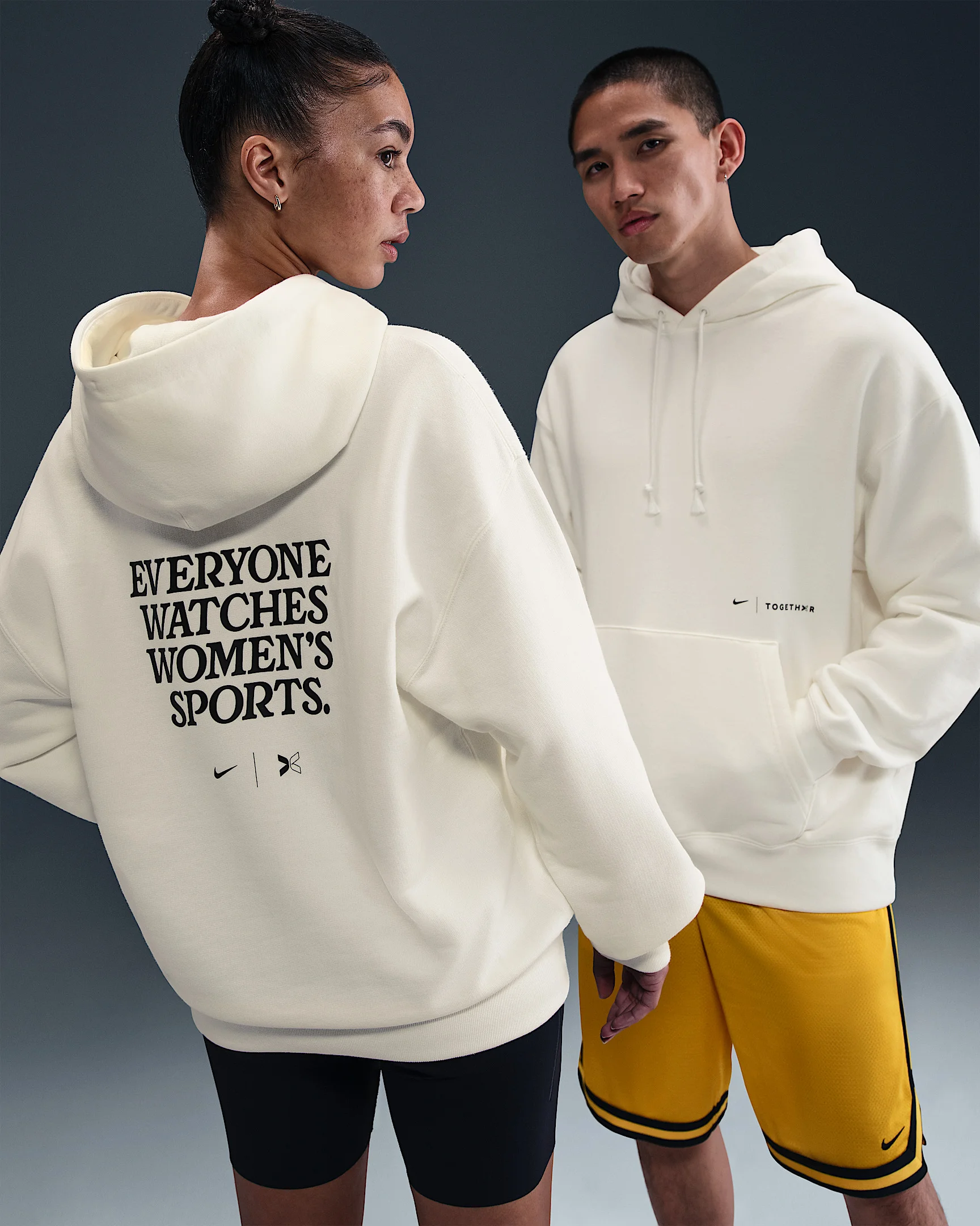 Made in collaboration with TOGETHXR, this midweight hoodie celebrates the unstoppable rise of women's sports. It's cut with a roomy fit from supersoft French terry fabric. Benefits - This midweight French terry fabric (with unbrushed loops on the inside) gives structure, breathability and softness—so it's just as ready for the gym as it is for the couch. - Ribbed cuffs and hem help keep the hoodie in place while you move. Product Details - Hood with drawcord - Front pocket - Body/Hood lining: 100% cotton. Rib: 98% cotton/2% spandex. - Machine wash - Imported - Shown: Sail/Black - Style: IF1965-133 SIZE & FIT Loose fit: roomy and relaxed