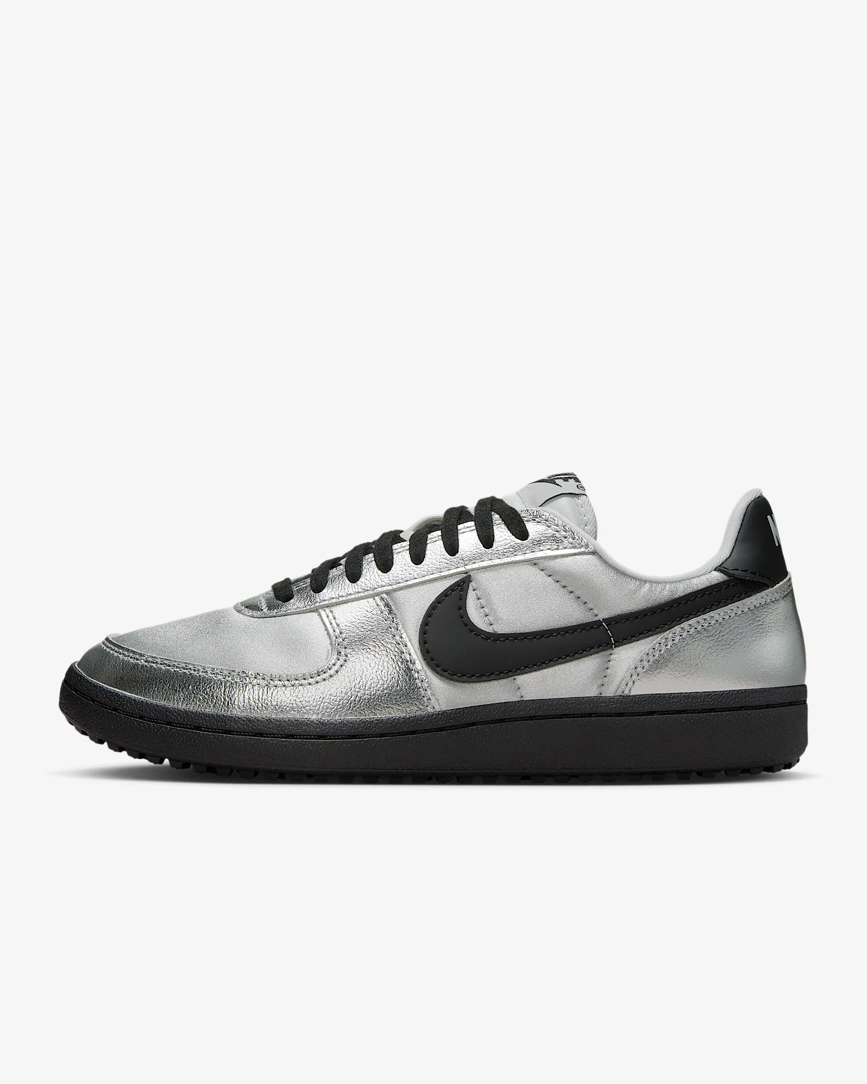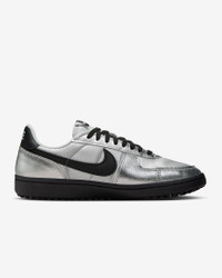 The Field General returns from its gritty football roots to shake up the sneaker scene. It pairs a metallic finish with a nubby Waffle sole—creating that vintage gridiron look. Benefits - Real and synthetic leather upper creates a retro look that’s built to last. - Waffle outsole provides great grip, while a full cupsole stitch adds durability. Product Details - Padded collar - Foam midsole - Rubber outsole - Shown: Metallic Silver/Photon Dust/White/Black - Style: HQ7397-001