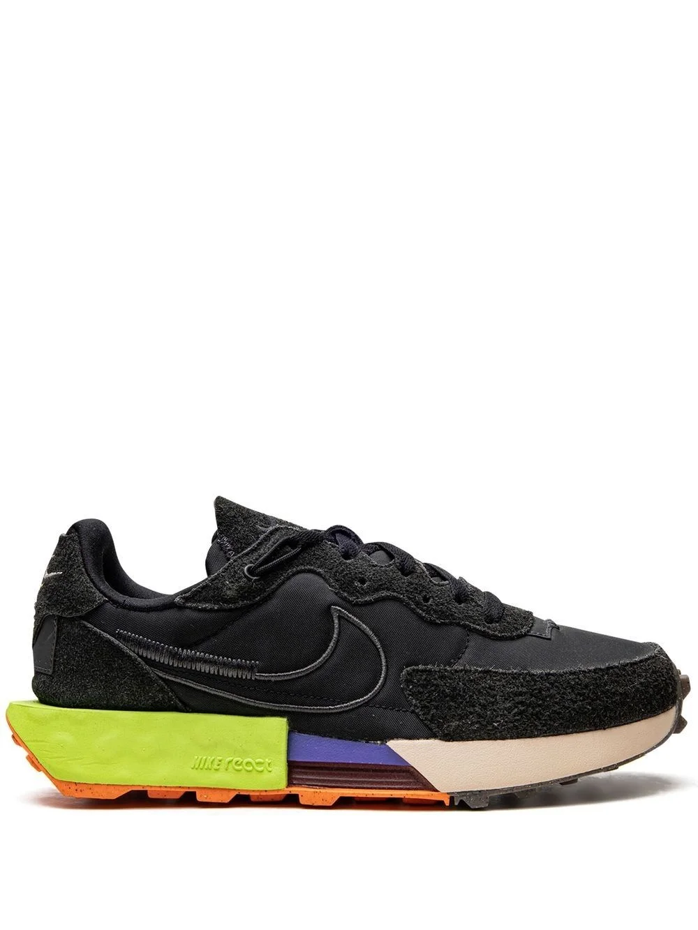 Fontanka Waffle sneakers Nike's Fontanka Waffle sneakers feature a futuristic design that takes cues from the Fontage Edge and Daybreak designs. This pair is crafted from black suede and is highlighted with a tonal Swoosh on the sides and contrasting mini Swooshes at the rear. Underneath, a React Foam midsole and a waffle outsole complete the look. Imported Composition Sole: Rubber 100% SIZE & FIT Measurement HEEL 1.18 in(3 cm) Sole height 0.78 in(2 cm)