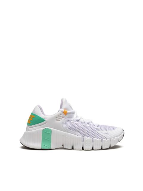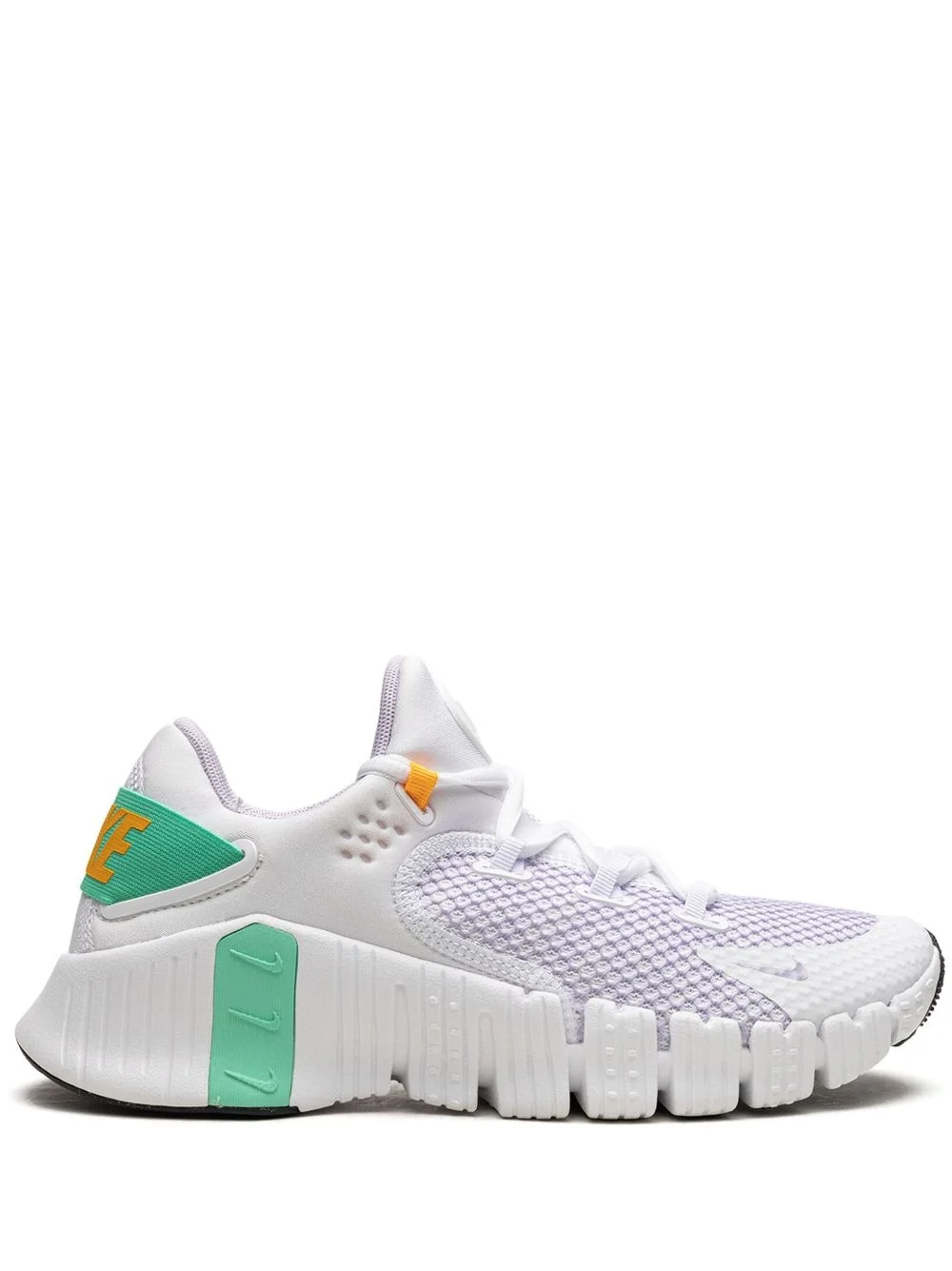 Free Metcon 4 sneakers Combining flexibility and stability, the Free Metcon 4 sneakers from Nike are emblematic of the brand’s athletic prowess. The style boasts an updated ‘chain-link’ mesh upper for breathability and ease of movement while the midfoot support and cushioned heel combine for improved protection. Highlights - White/mint green - Mesh panelling - Signature swoosh logo detail - Logo patch at the tongue - Round toe - Front lace-up fastening - Contrasting branded heel counter - Chunky rubber sole - These styles are supplied by a premium sneaker marketplace. stocking only the most sought-after footwear, they source and curate some of the most hard to find sneakers from around the world. Imported Composition Sole: Rubber 100% Outer: Mesh 100% Lining: Mesh 100%