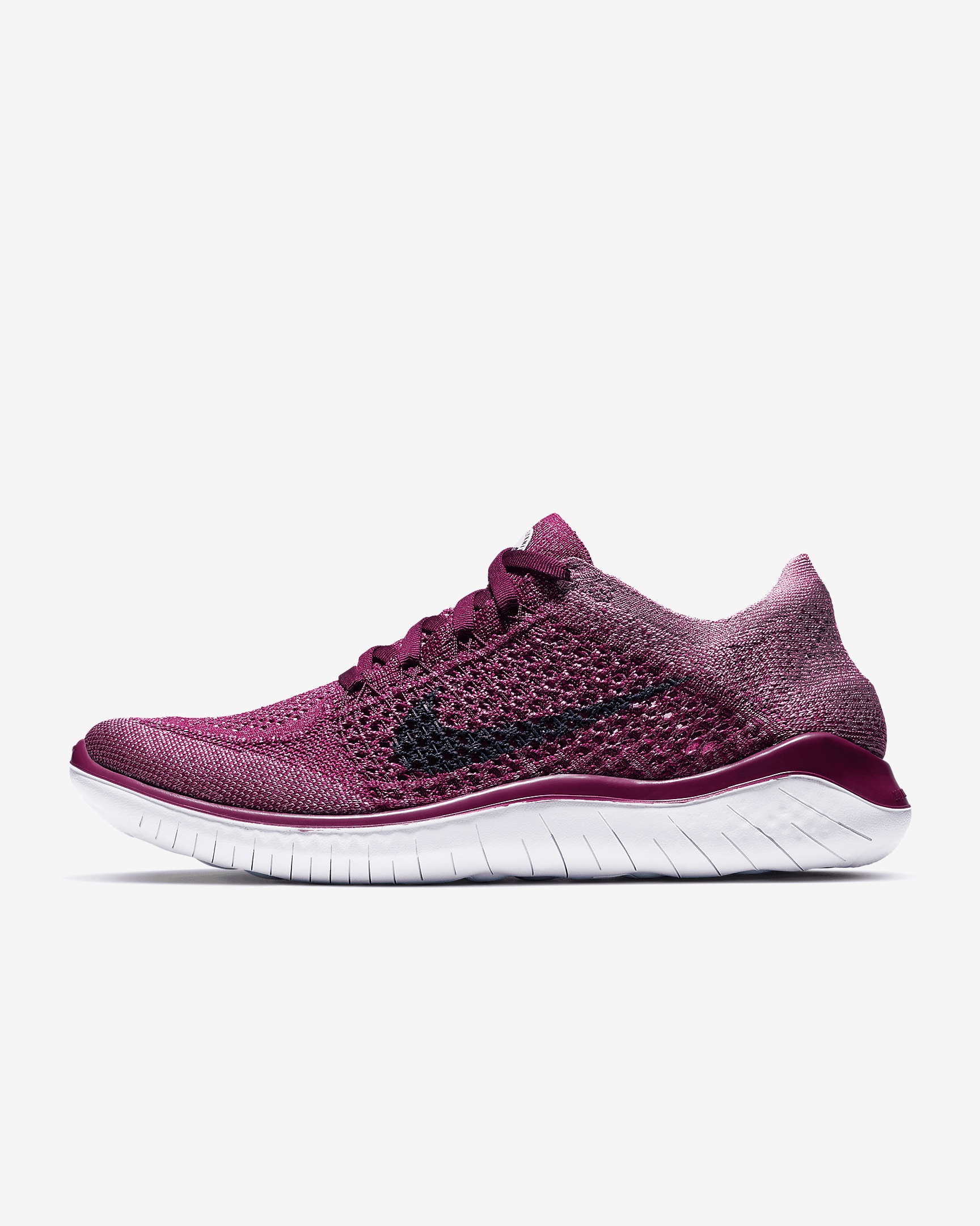 Made for short runs when you want a barefoot-like feel, the Nike Free Run 2018 feels super light and flexible. Its sock-like upper has more stretch yarns than previous versions, so it hugs your feet more than ever. The innovative sole has an updated construction, yet still expands and contracts with every movement. The packable design makes the shoe easy to stuff into your bag—so you can get in a few miles on the fly. Benefits - Rounded heel is made to roll with the ground as you stride - Flywire technology woven into the upper integrates with the laces for a dynamic, supportive fit through the midfoot. - Texture has been added under the toe and heel to enhance traction in these high-abrasion zones. Product Details - Weight: 5.55oz/157.4g (women's size 8) - Offset: 8mm (14mm forefoot, 22mm heel) - Shown: Raspberry Red/White/Teal Tint/Blue Void - Style: 942839-600 SIZE & FIT Fits small; we recommend ordering a half size up