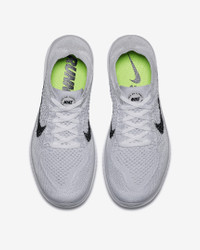 Made for short runs when you want a barefoot-like feel, the Nike Free Run 2018 feels super light and flexible. Its sock-like upper has more stretch yarns than previous versions, so it hugs your feet more than ever. The innovative sole has an updated construction, yet still expands and contracts with every movement. The packable design makes the shoe easy to stuff into your bag—so you can get in a few miles on the fly. More Benefits - Rounded heel is made to roll with the ground as you stride - Flywire technology woven into the upper integrates with the laces for a dynamic, supportive fit through the midfoot. - Texture has been added under the toe and heel to enhance traction in these high-abrasion zones. Product Details - Weight: 5.55oz/157.4g (women's size 8) - Offset: 8mm (14mm forefoot, 22mm heel) - Shown: White/Pure Platinum/Black - Style: 942839-100 SIZE & FIT Fits small; we recommend ordering a half size up