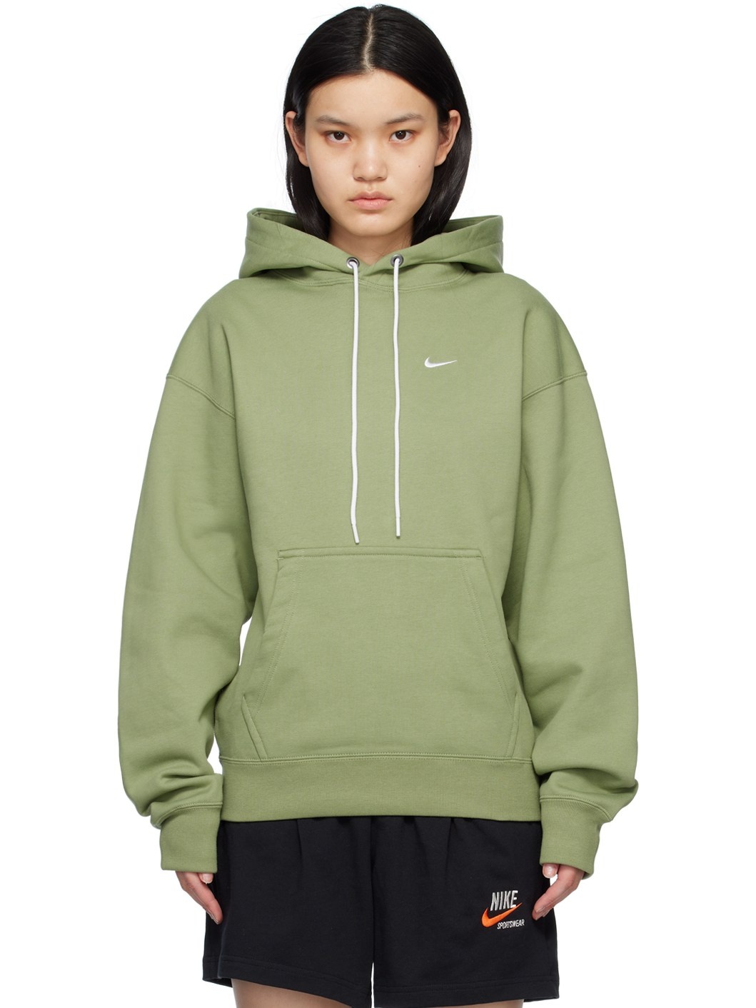 Cotton-blend fleece hoodie. · Drawstring at hood · Swoosh embroidered at chest · Kangaroo pocket · Rib knit hem and cuffs · Dropped shoulders Please note that this item may be shipped only within North America. Supplier color: Oil green/White
