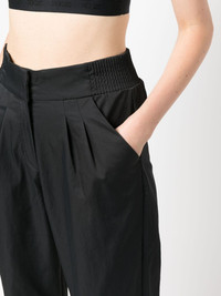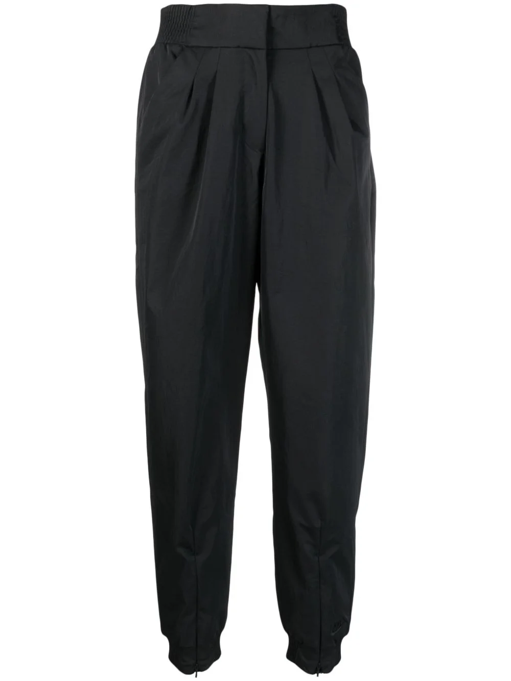 high-waisted tapered trousers Highlights - Black - Pleat detailing - Signature swoosh logo detail - Embroidered logo - High waist - Concealed front fastening - Rear elasticated waistband - Two diagonal pockets to the sides - Rear welt pocket - Tapered leg - Ankle zips Imported Composition Polyester 100% SIZE & FIT Model measurements Height 5 ft 10 in(1.78 m) Bust/Chest 31.49 in(80 cm) Hips 36.22 in(92 cm) Waist 25.59 in(65 cm)