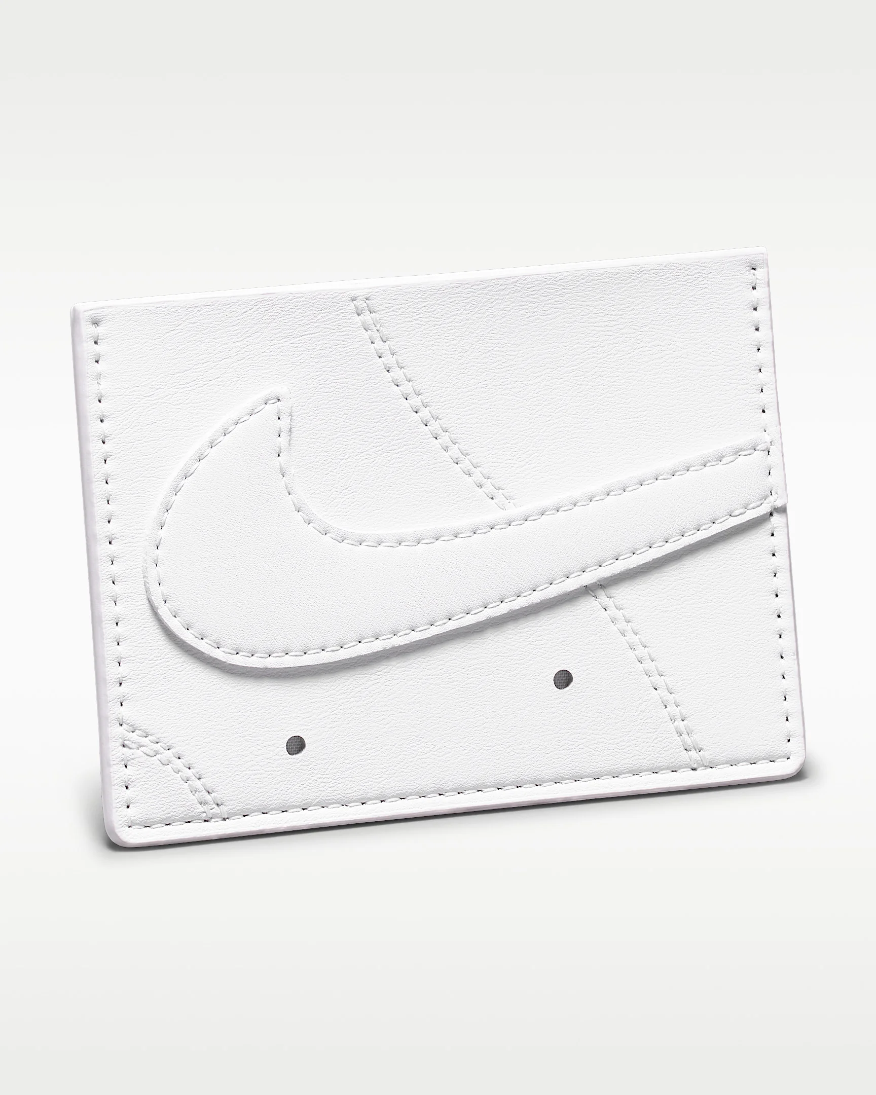 With a design that nods to a shoe that changed sneaker history, this card wallet has a sleeve for storing cash and three slots for cards. Benefits - Includes two sleeves and one slot for storing your cash, cards and IDs Product Details - Body: 60% polyurethane/40% nylon. Lining: 87% polyester/13% EVA. - Sport clean - Imported - Shown: White - Style: N1009738-176