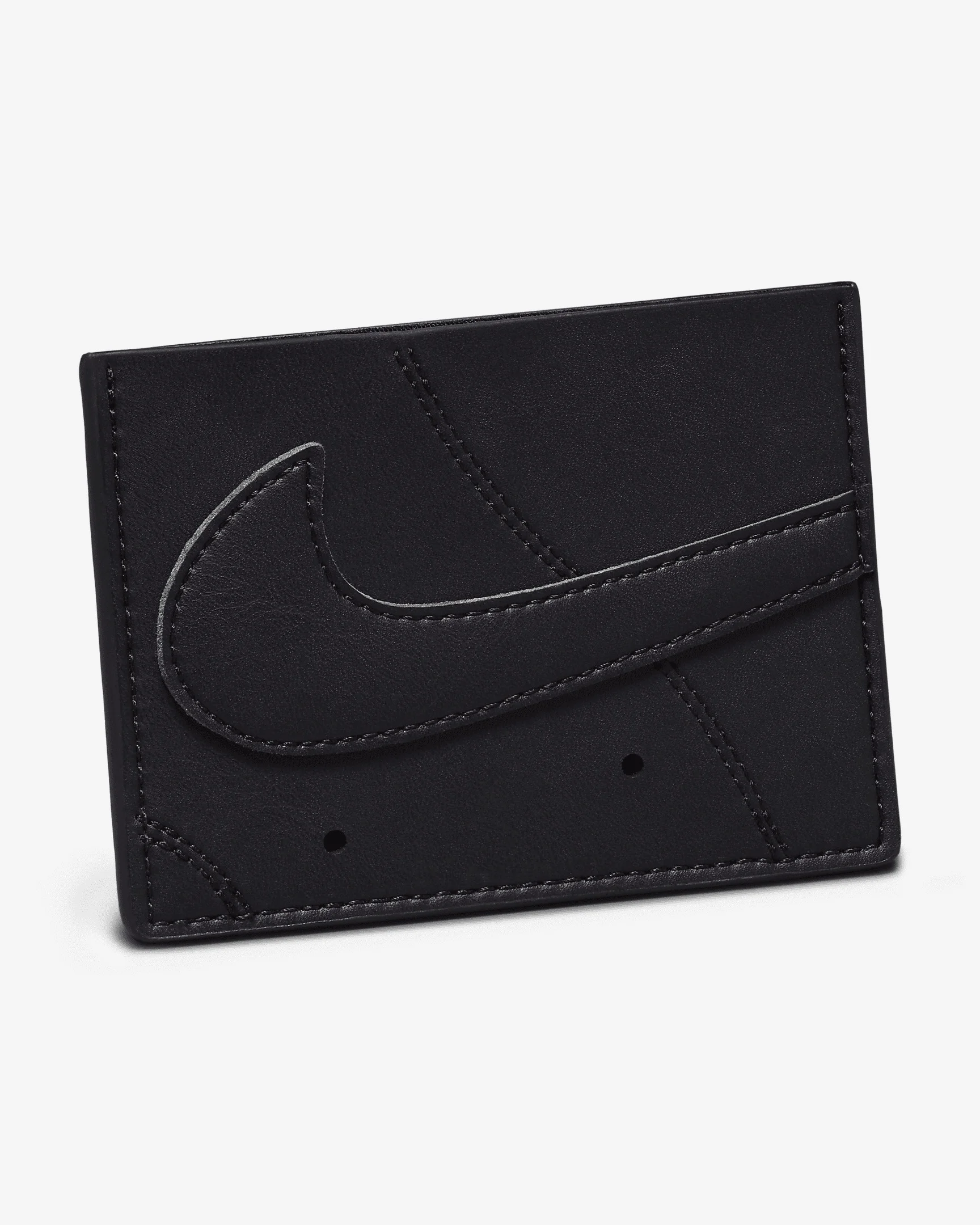 With a design that nods to a shoe that changed sneaker history, this card wallet has a sleeve for storing cash and three slots for cards. Benefits - Includes two sleeves and one slot for storing your cash, cards and IDs Product Details - Body: 60% polyurethane/40% nylon. Lining: 87% polyester/13% EVA. - Sport clean - Imported - Shown: Black - Style: N1009738-013